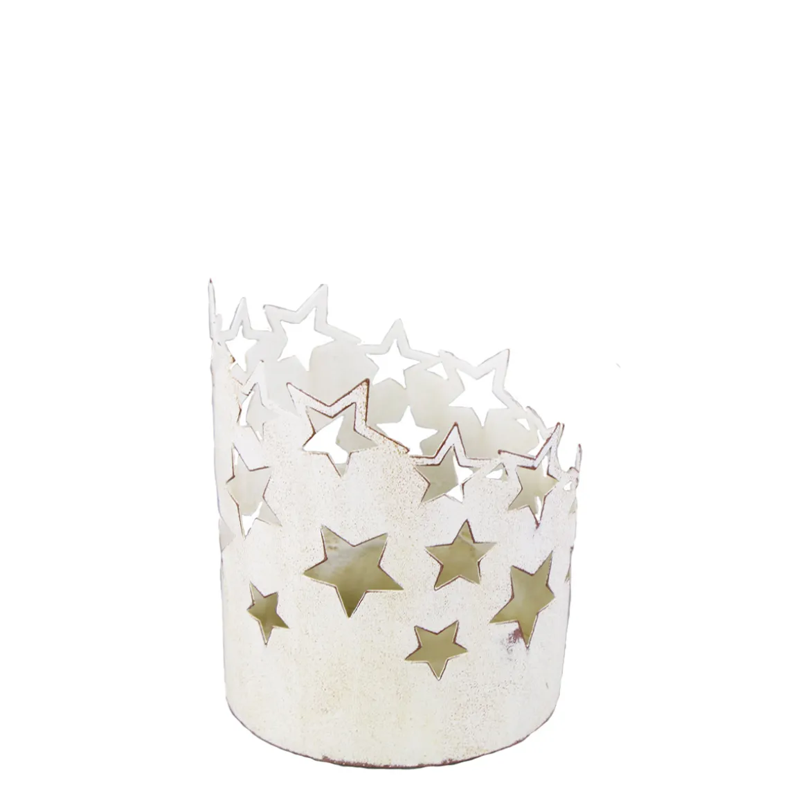 Windlicht Sterne, Metallwindlicht mit Sterne, creme used look, 12x9cm, Metall