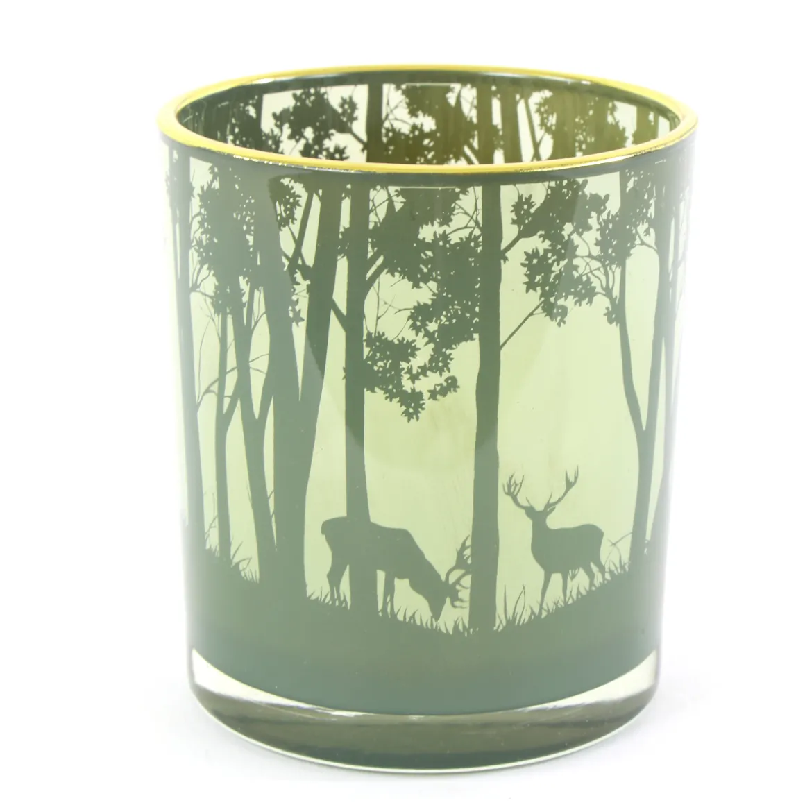 Windlichtglas Wald, Hirsche im Wald, grün, 10x12cm, Glas