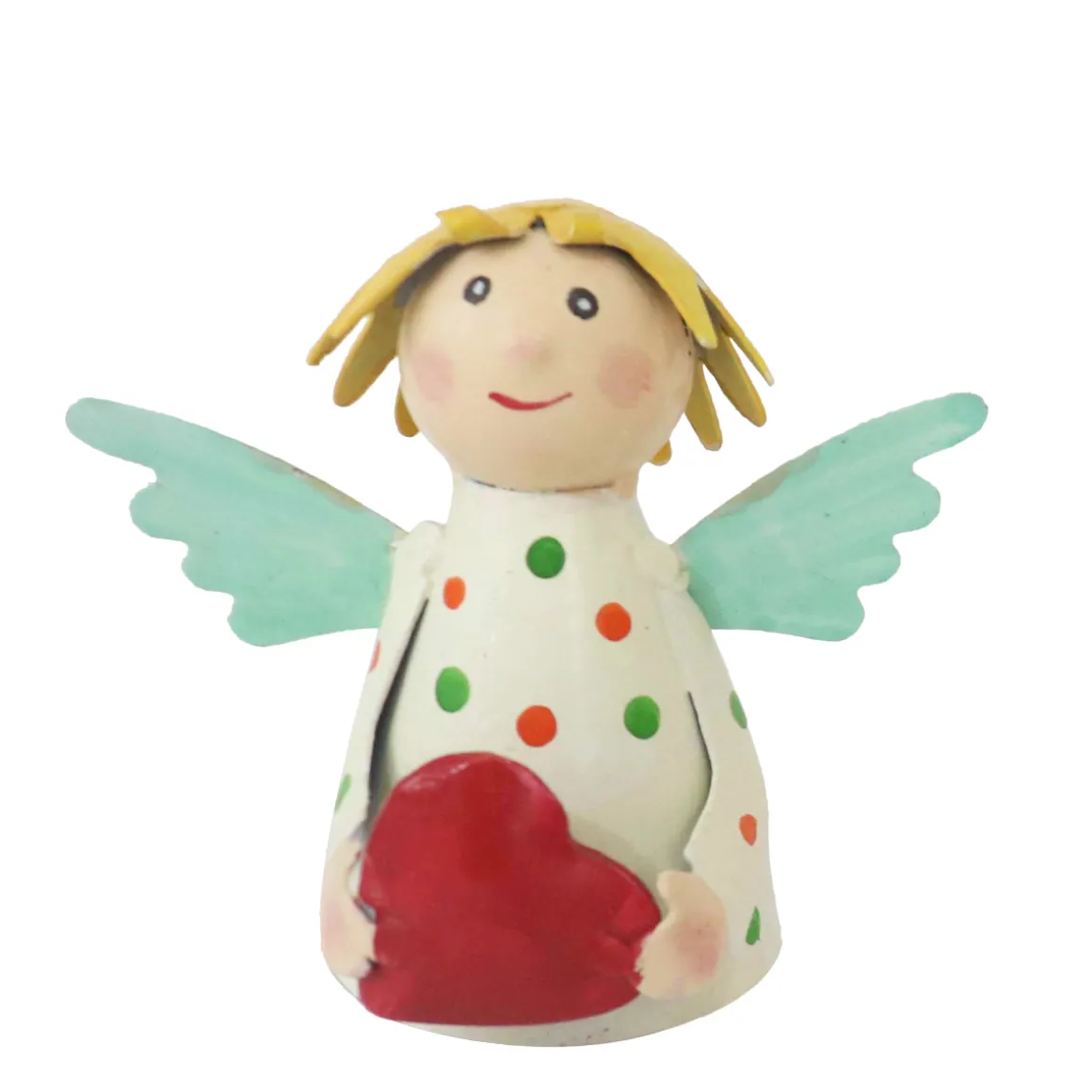 Produktinformationen „Zaunhocker Engel Schutzengel, Metallengel mit Herz und weiß-creme Pünktchen-Kleid, 9cm“