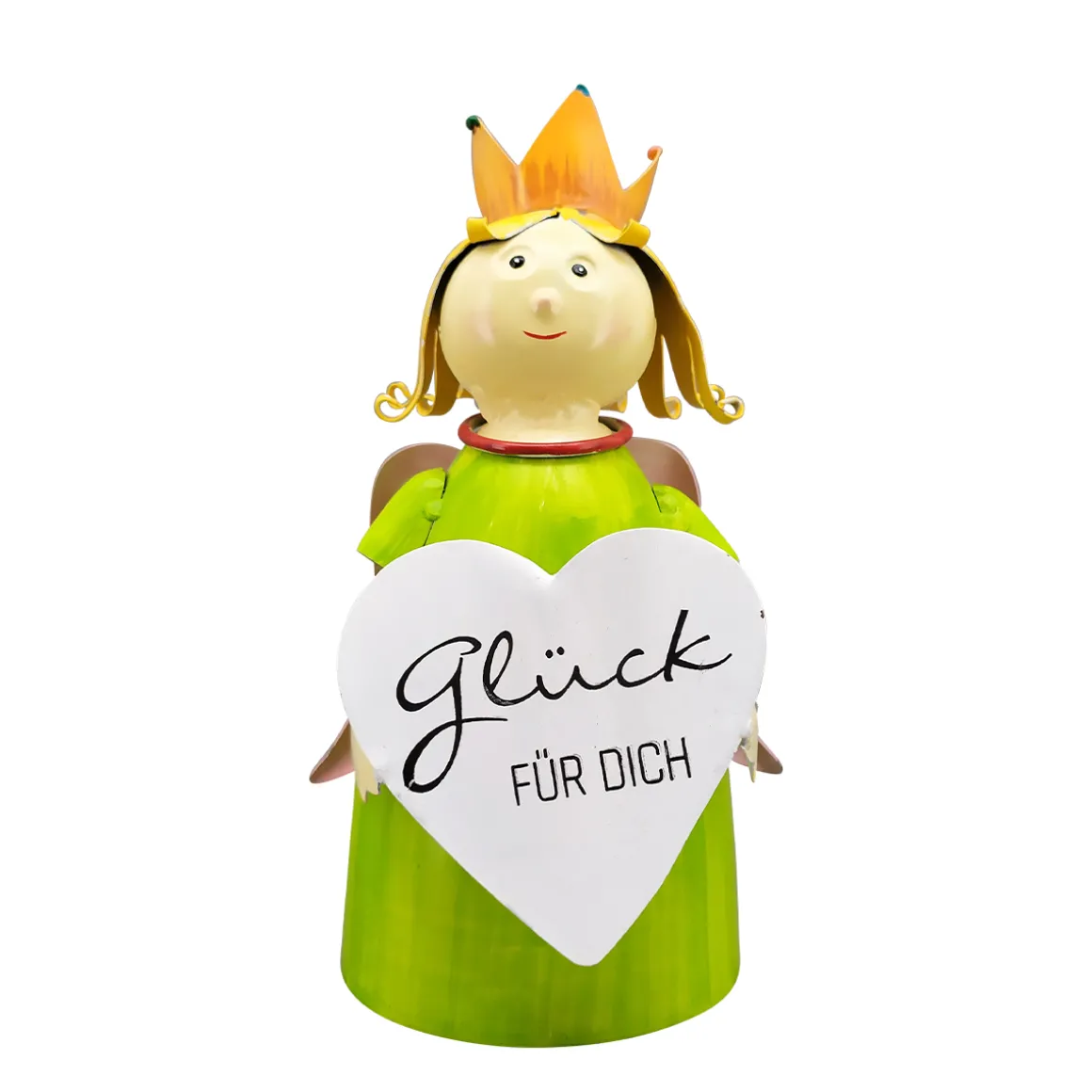 Produktinformationen „Zaunhocker Engel Schutzengel, Metallengel mit Krone und Schild: Glück für dich, 21cm“