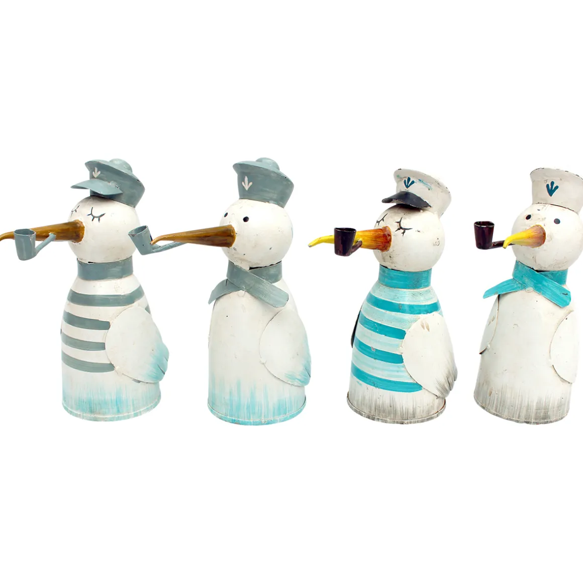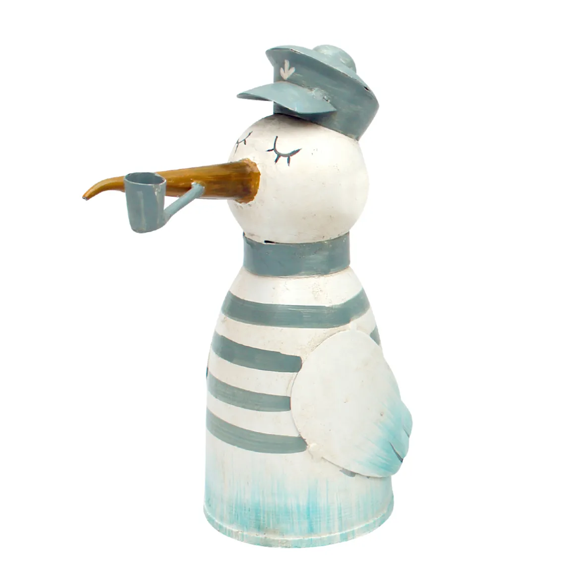 Zaunhocker Matrose Möwe, Metallvogel mit Pfeife und Ringelshirt, used look, 20cm