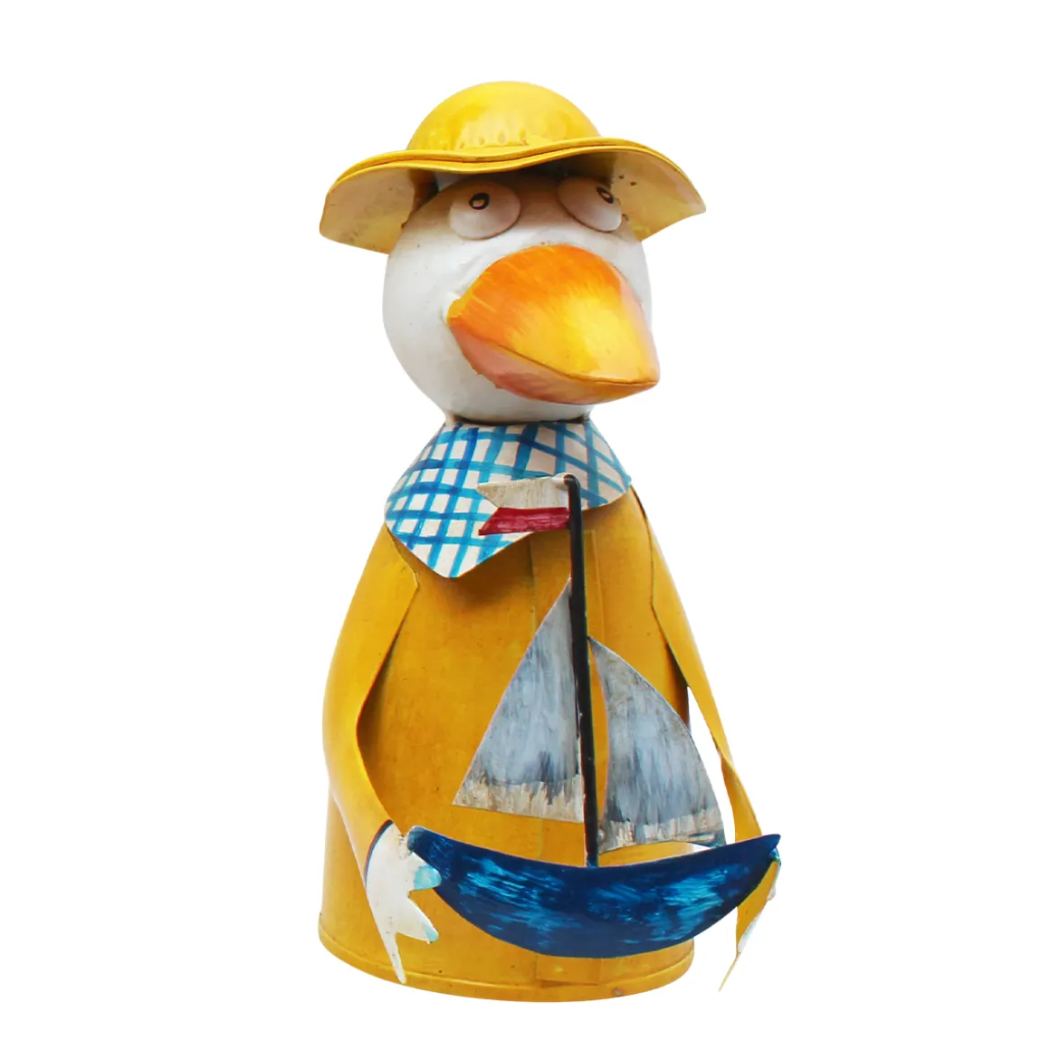 Produktinformationen „Zaunhocker Möwe, Metallmöwe mit Regenmantel und Schiff, 15x21cm“