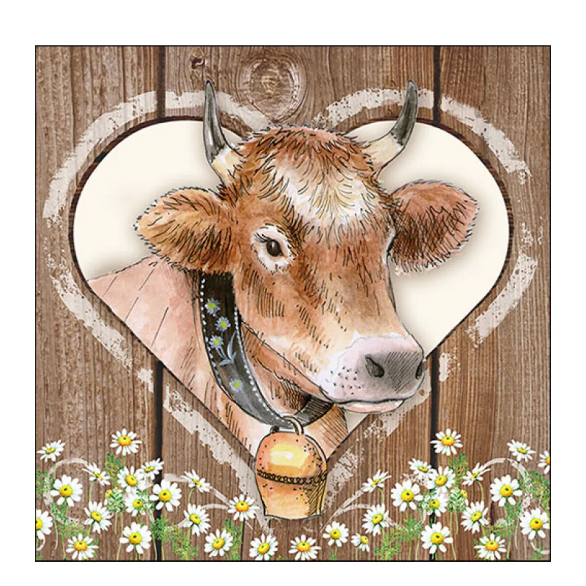 Produktinformationen „Ambiente Papierservietten Kuh, Kuh im Herz, 33x33cm“