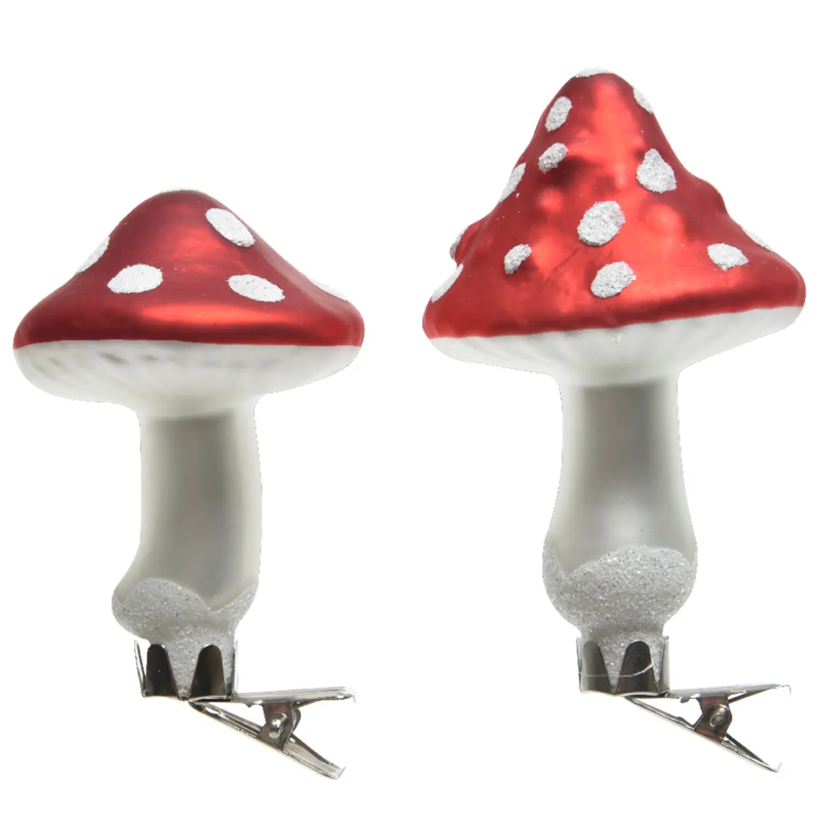 Baumschmuck Fliegenpilze, Glas-Pilze auf Clip, 3 St/Box, 9cm