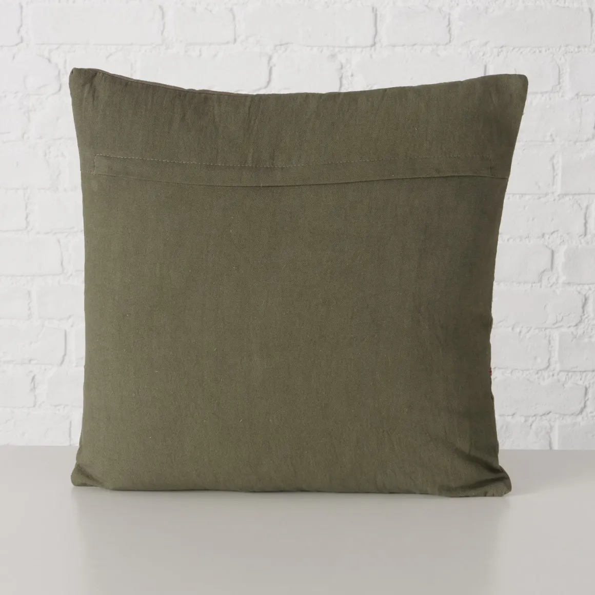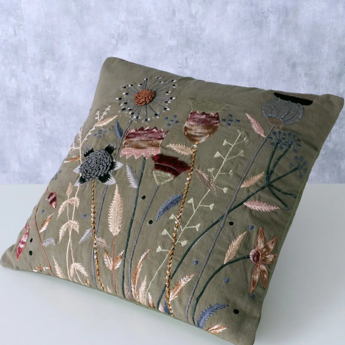 Baumwoll-Leinen Kissen Ramoni, Blumenkissen salbeigrün, rosa-beige bestickt, 45x45cm, Boltze Home Collections