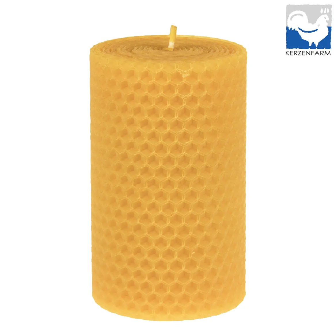 Produktinformationen „Bienenwachskerze, Stumpen aus Bienenwachs-Wabenplatten, 100x58mm, Kerzenfarm Hahn“