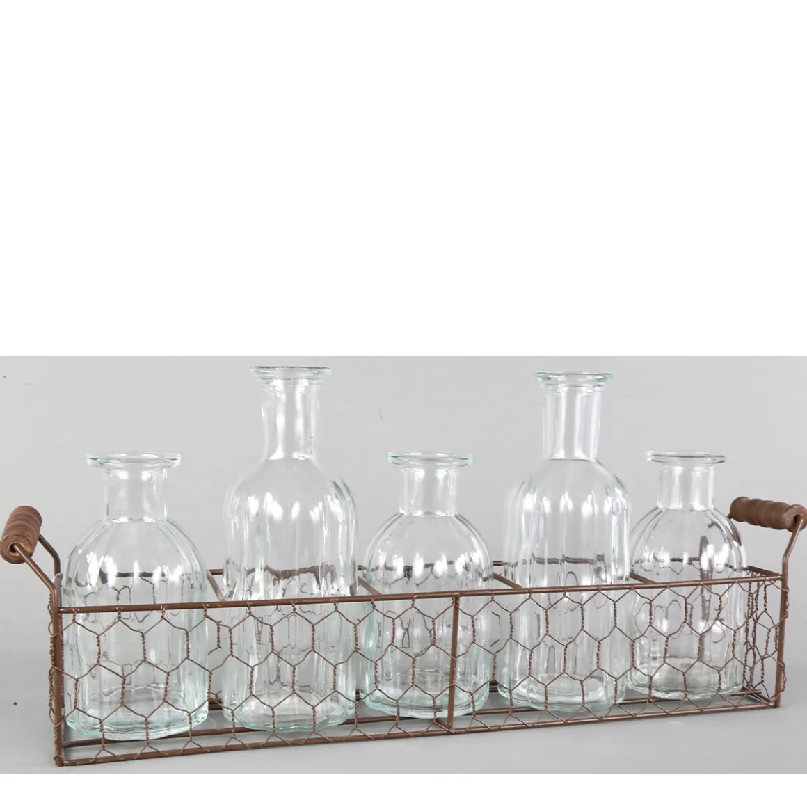Produktinformationen „Blumenvasen im Drahtkorb, 5 Vasen im Henkelkorb, 46cm“