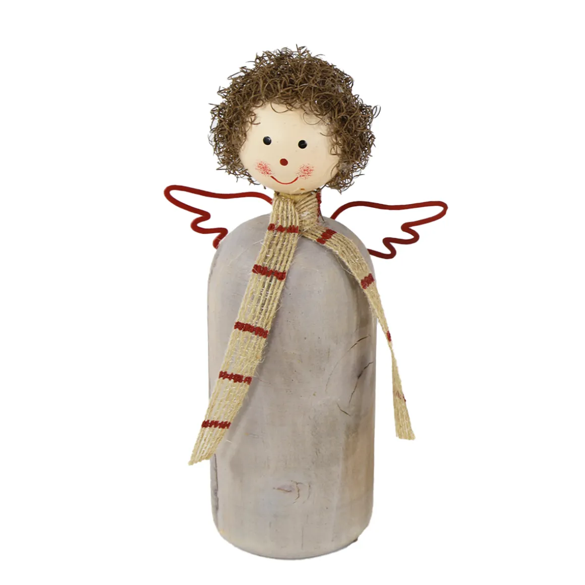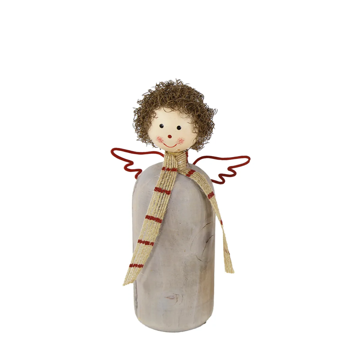 Deko Engel, Holzengel mit Schal, used look, grau-rot, 16cm