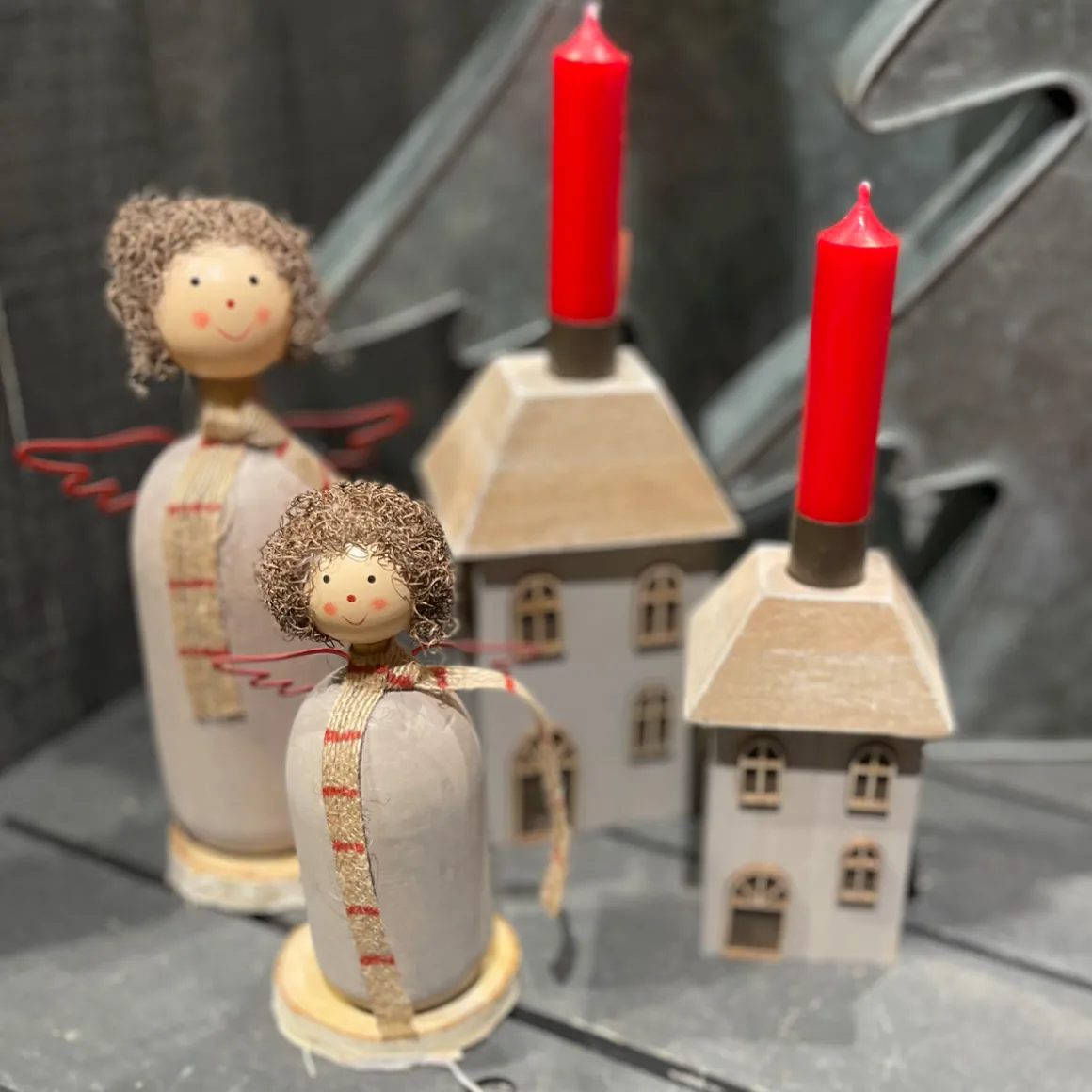 Produktinformationen „Deko Engel, Holzengel mit Schal, used look, grau-rot, 16cm“