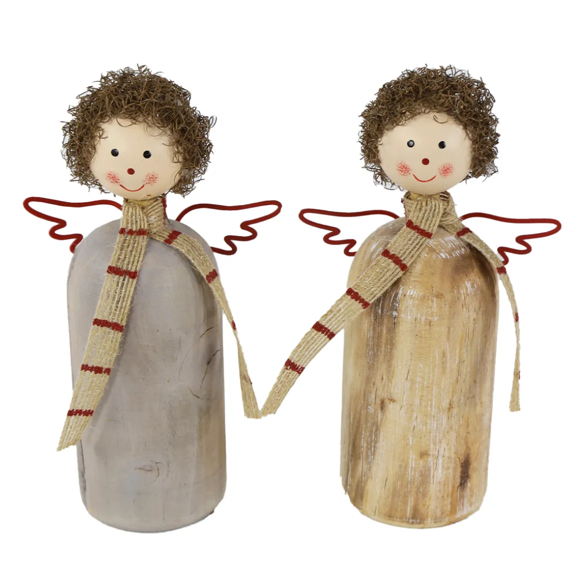 Deko Engel, Holzengel mit Schal, used look, grau-rot, 20cm