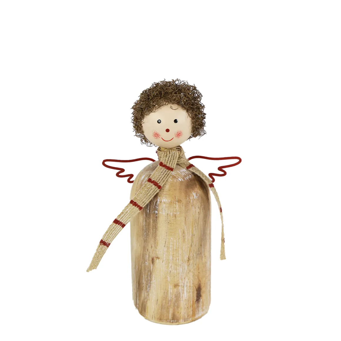 Deko Engel, Holzengel mit Schal, used look, natur-rot, 16cm