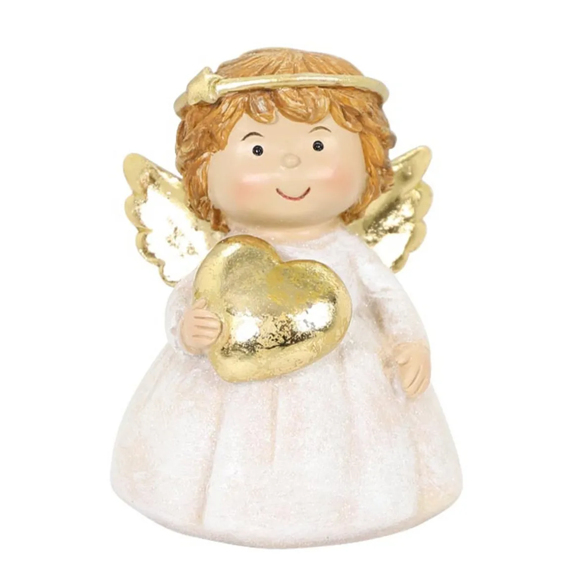Deko Engel Lilian, putziger Weihnachtsengel mit goldenem Herz, 10cm