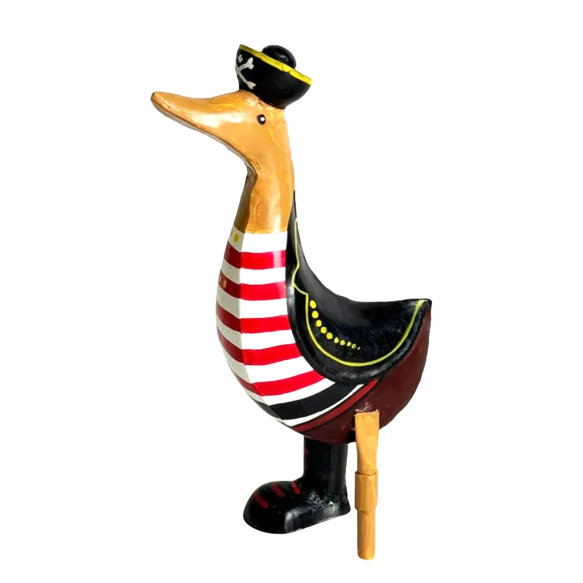 Deko Ente Pirat, Metallente Pirat mit Holzbein, 35cm, Metall