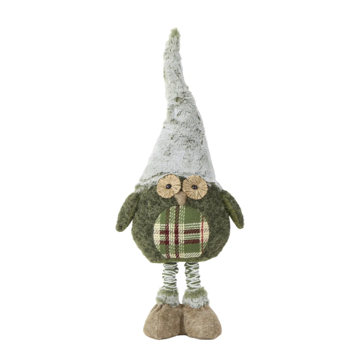 Deko Eule mit Teleskopbeine und Plüschmütze, ausziehbar 50-70cm, grün