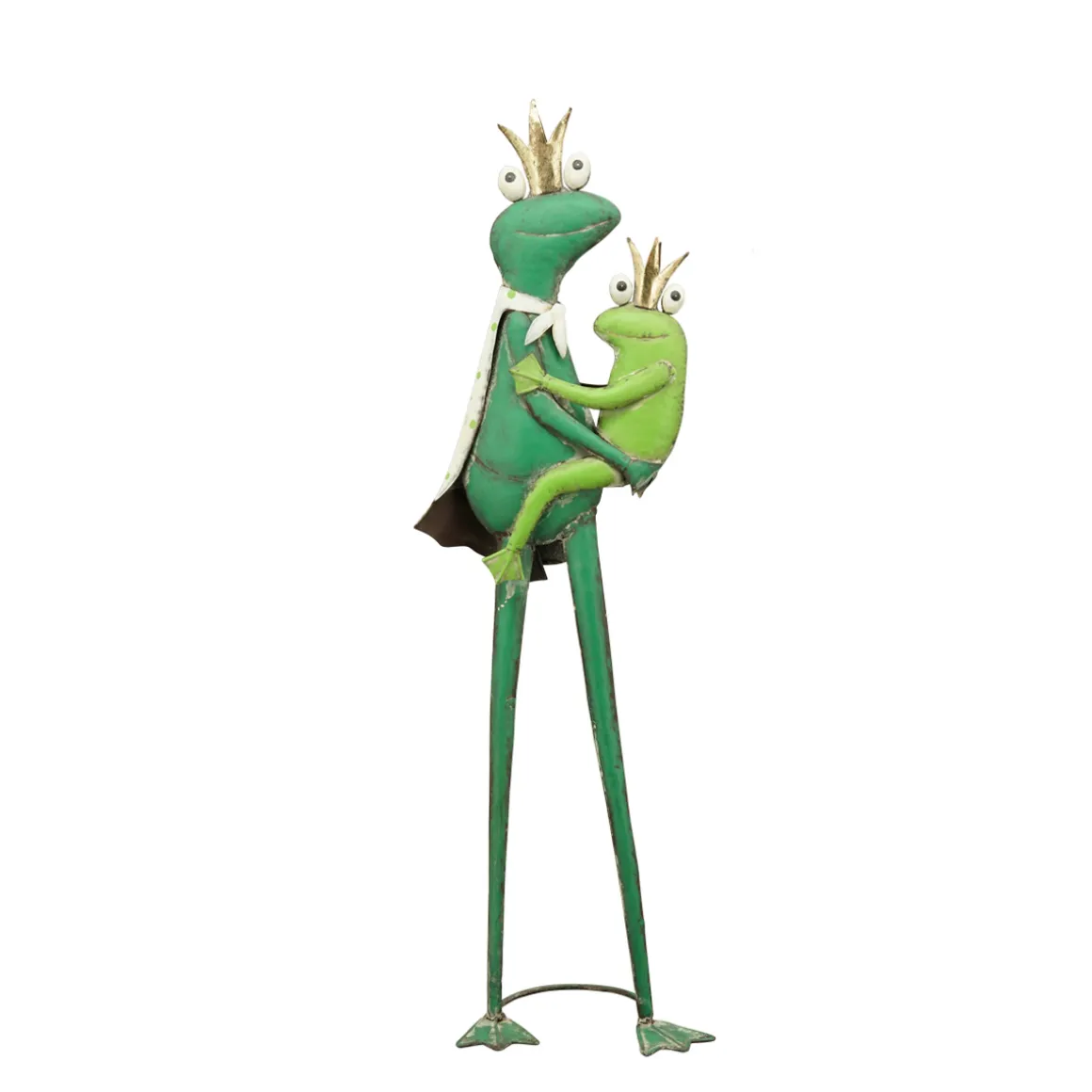 Deko Frosch mit Babyfrosch, große schlanke Metallfroschkönigin mit Babykönig, 71cm