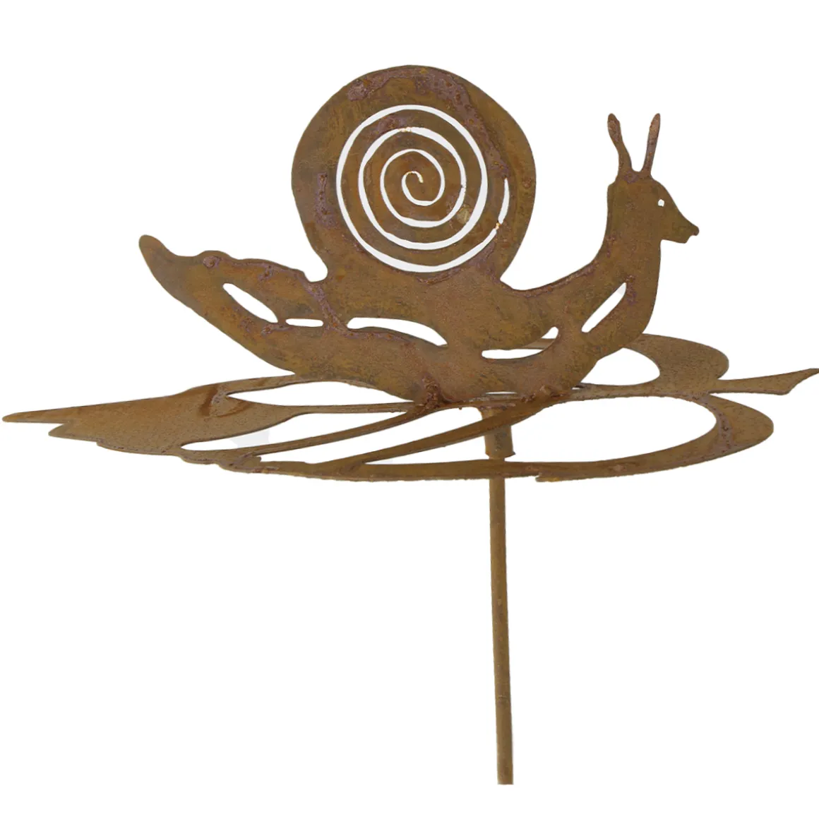 Deko Gartenstecker Schnecke, Rostschnecke auf Blatt, 10x70cm, Edelrost
