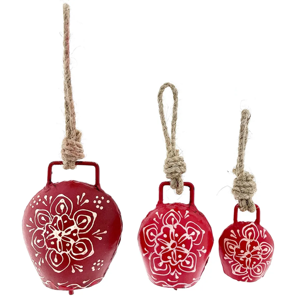 Produktinformationen „Deko Glocke rot mit Klang, Kuhglocke mit Blumenmuster rot-weiß, 5cm“