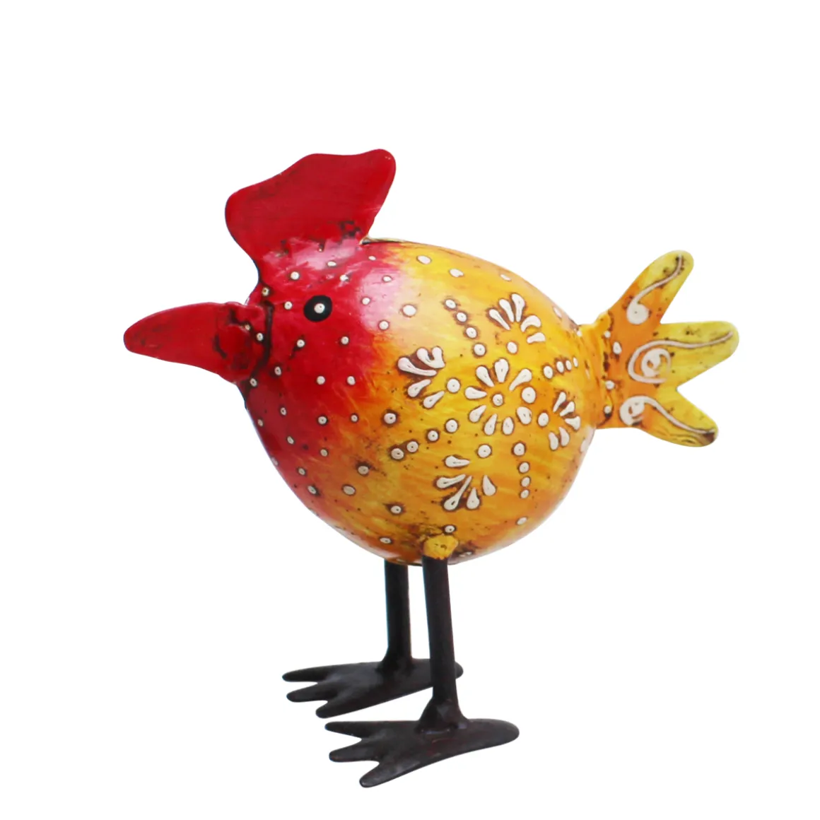 Produktinformationen „Deko Hahn eiform, kleiner Metallhahn orange mit orangem Schweif, 9x10cm“