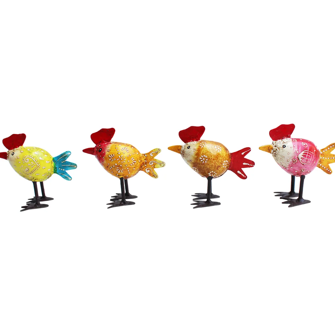 Deko Hahn eiform, kleiner Metallhahn orange mit rotem Schweif, 8x9cm
