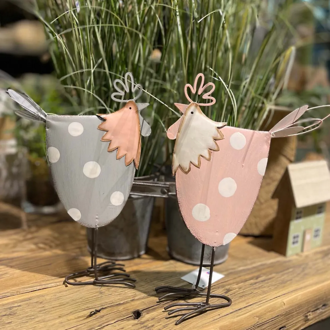 Deko Hahn Ostern, Metallhahn grau mit weißen Punkte, 25cm, Metall