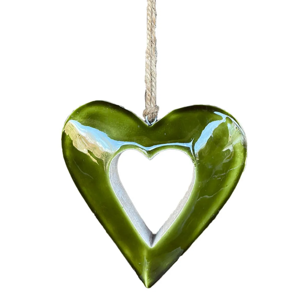 Deko Herz grün, Holzherz mit Lacküberzug grün glänzend, 11x12cm, Hänger