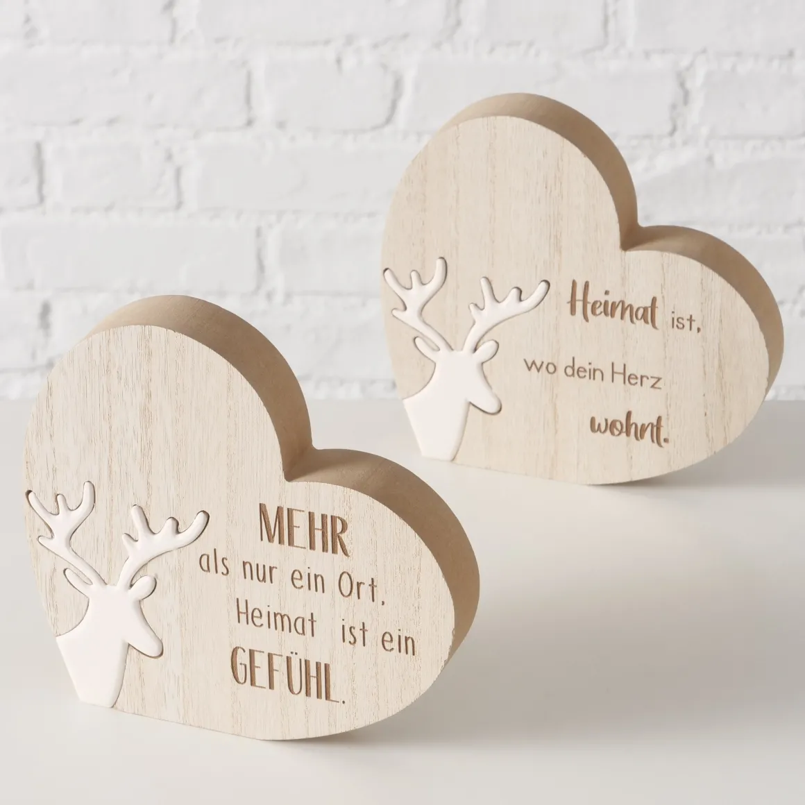Deko Herz Hirsch, Holzherz mit Hirsch und Spruch: Mehr als nur ein Ort…, 16x15cm, Boltze Home Collections