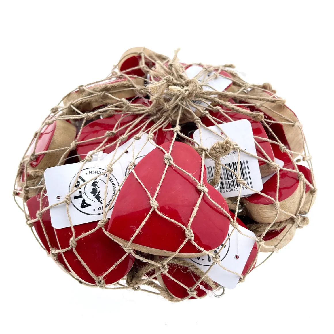 Material: Holz, Lack- emailliert, Jutekordel