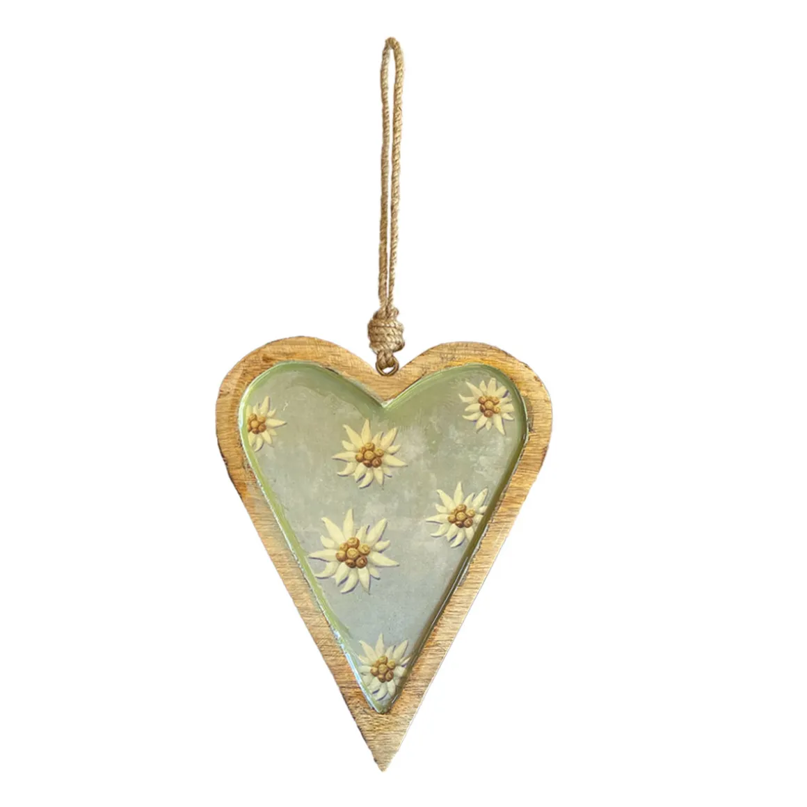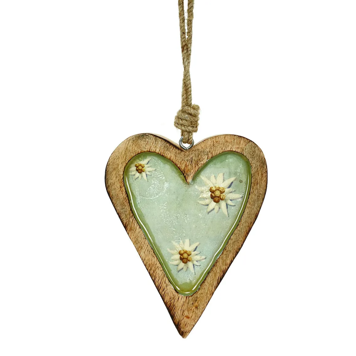 Deko Herz Landhaus, Holzherz blaugrau mit Edelweiß, Emailleoptik, 7x10cm, Hänger