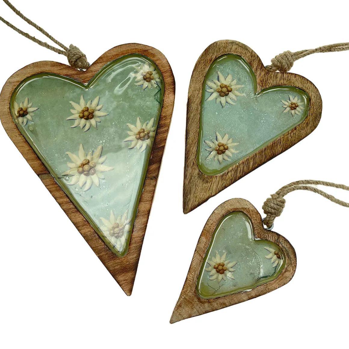 Produktinformationen „Deko Herz Landhaus, Holzherz blaugrau mit Edelweiß, Emailleoptik, 7x10cm, Hänger“