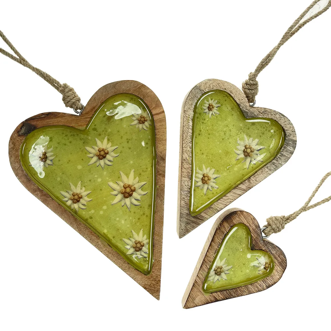 Produktinformationen „Deko Herz Landhaus, Holzherz hellgrün mit Edelweiß, Emailleoptik, 11x14cm, Hänger“