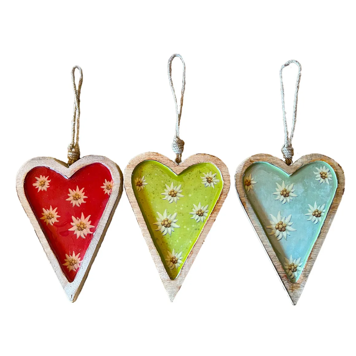 Produktinformationen „Deko Herz Landhaus, Holzherz hellgrün mit Edelweiß, Emailleoptik, 14x19cm, Hänger“