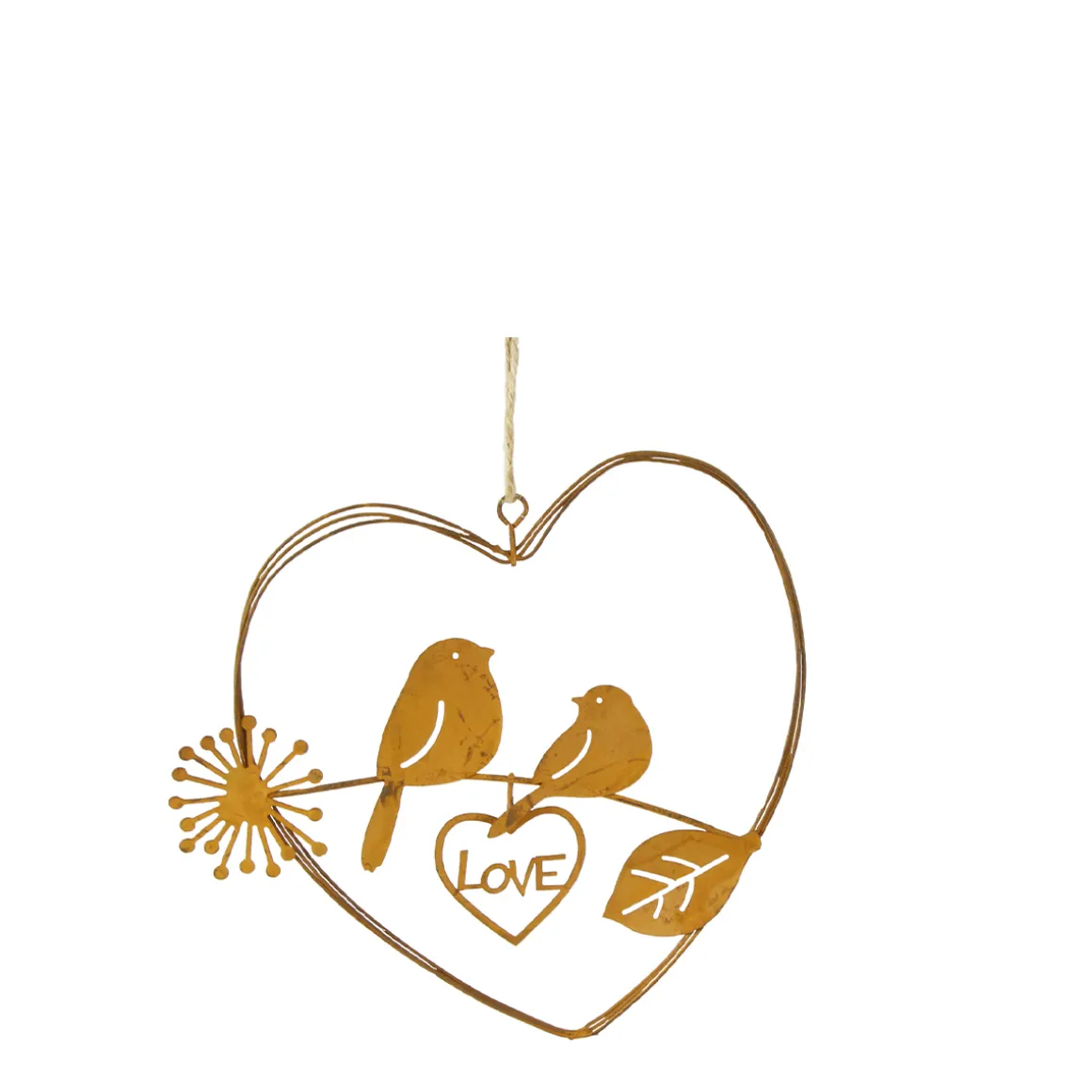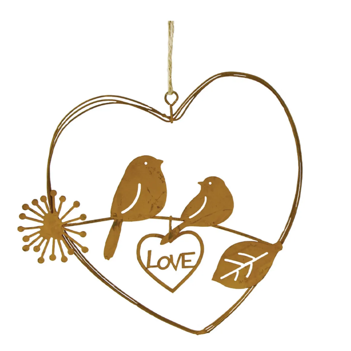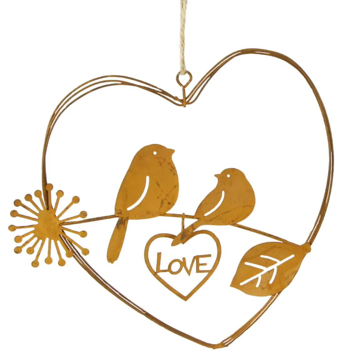 Deko Herz Love, filigranes Rostherz aus dünnen Drähten mit Vögel, 15cm, Hänger, Edelrost