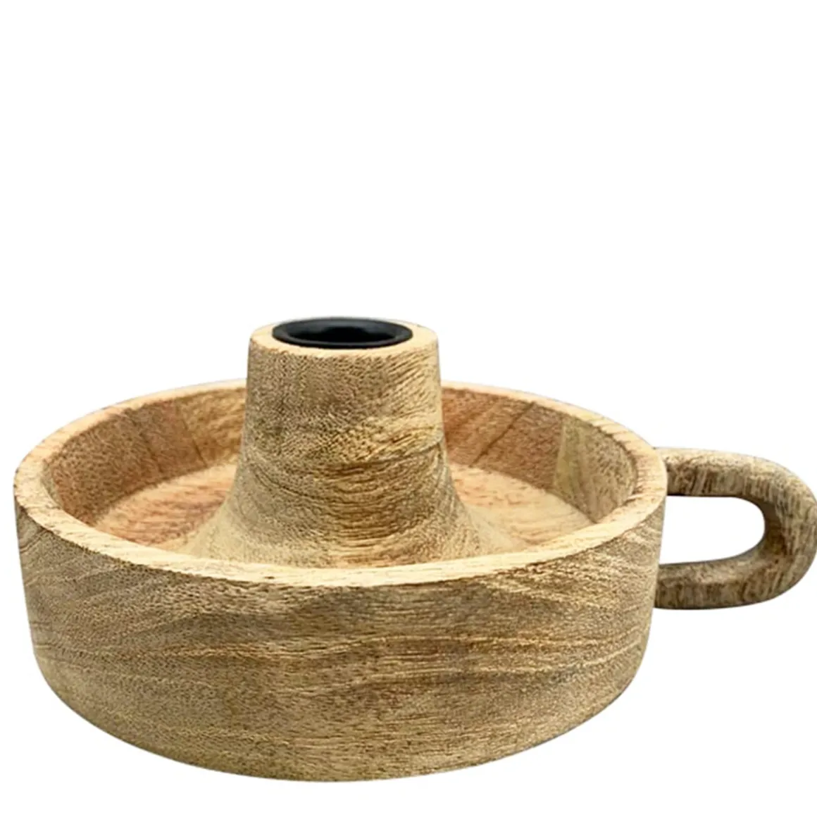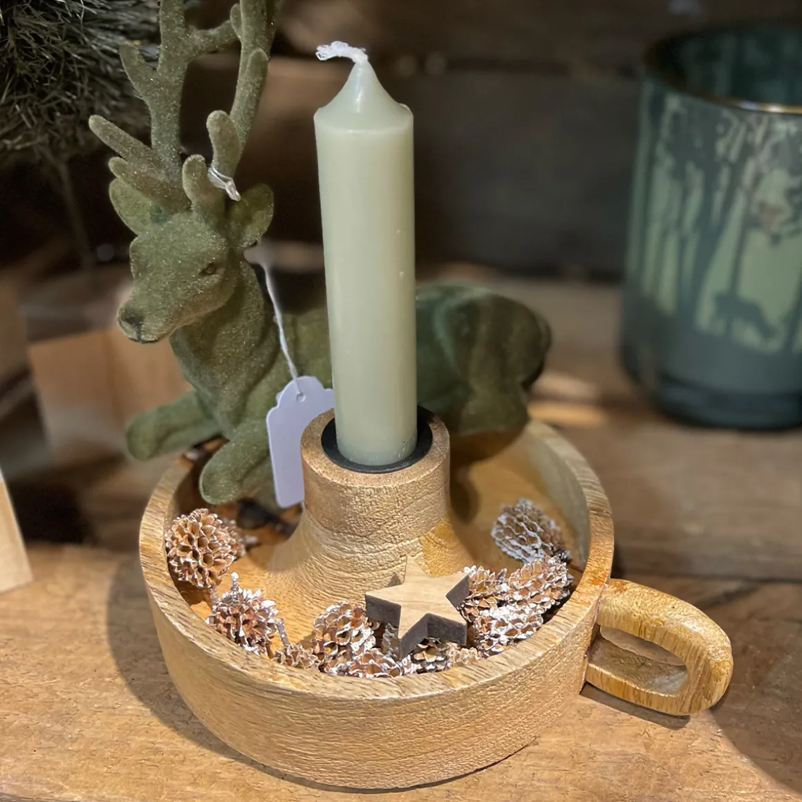 Deko Kerzenhalter Kammerleuchte, Holzschale mit Henkel, Ø16cm, Naturholz