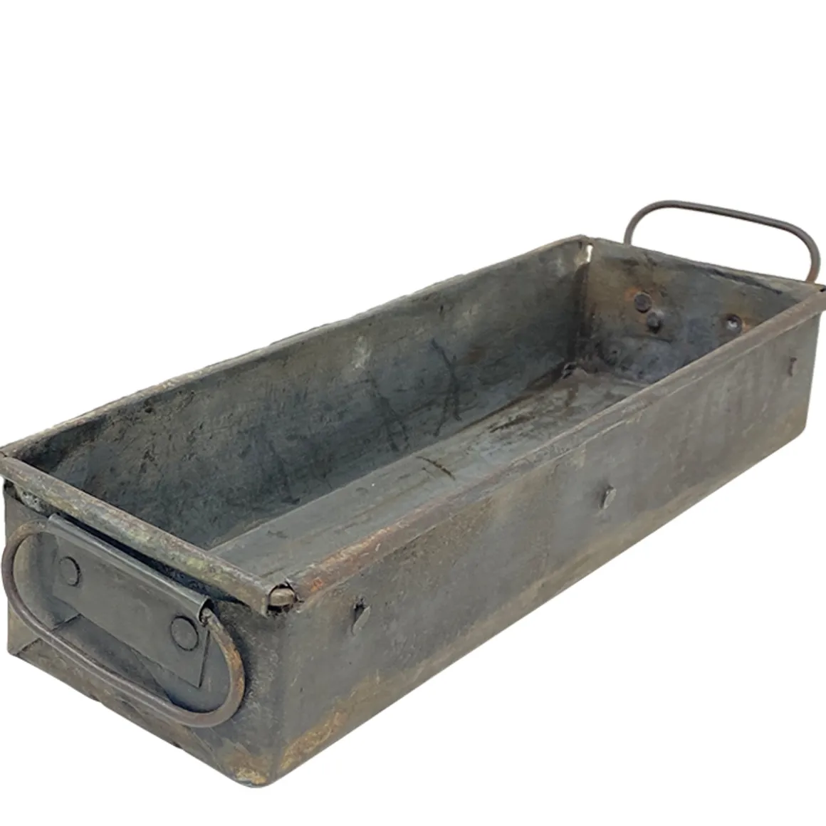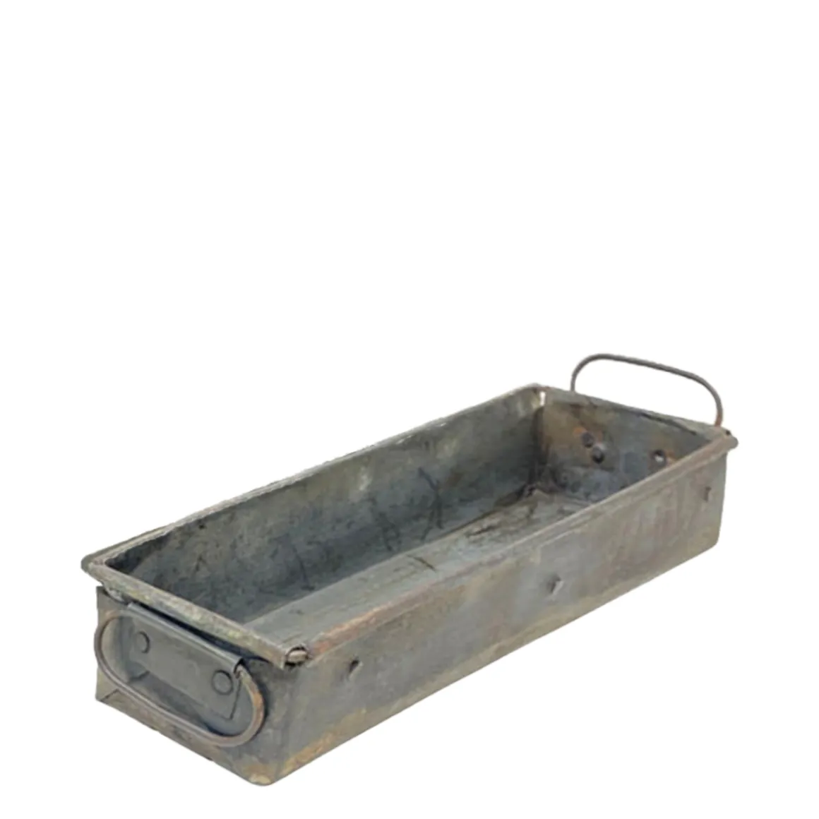 Diese längliche Deko-Kiste aus Metall begeistert mit ihrem authentischen Antik-Charme und robusten Used-Look.