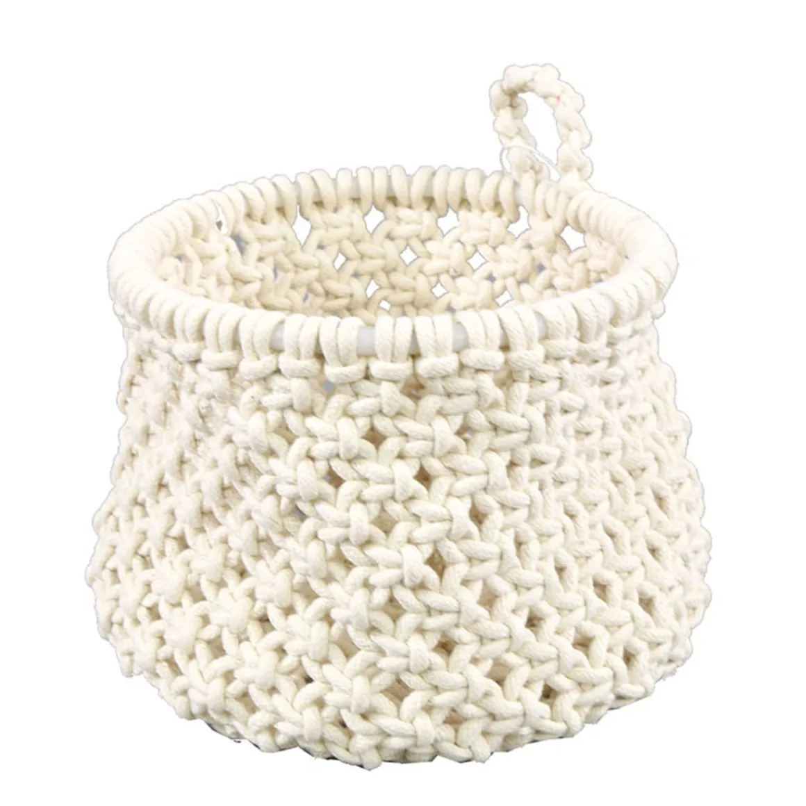 Deko Korb Boho gehäckelt, Makramee-Korb mit Schlaufe, 16x13cm