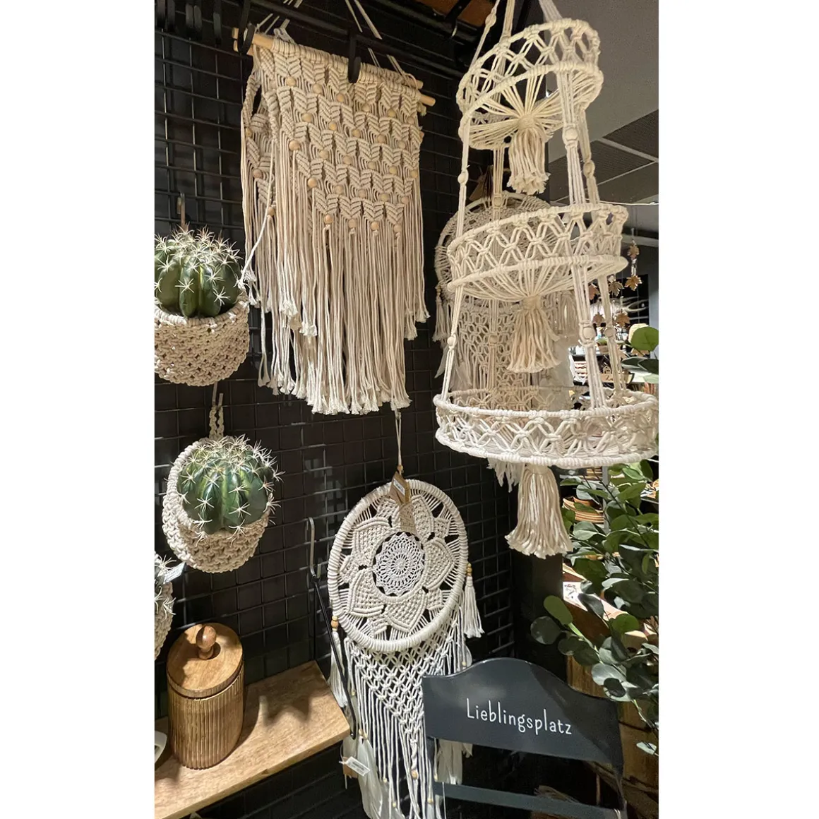 Produktinformationen „Deko Korb Boho gehäckelt, Makramee-Korb mit Schlaufe, 16x13cm“