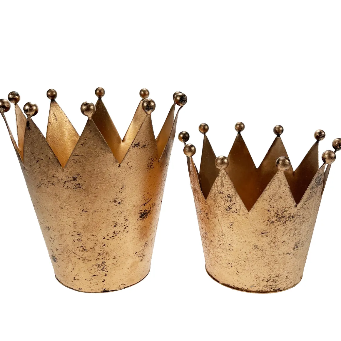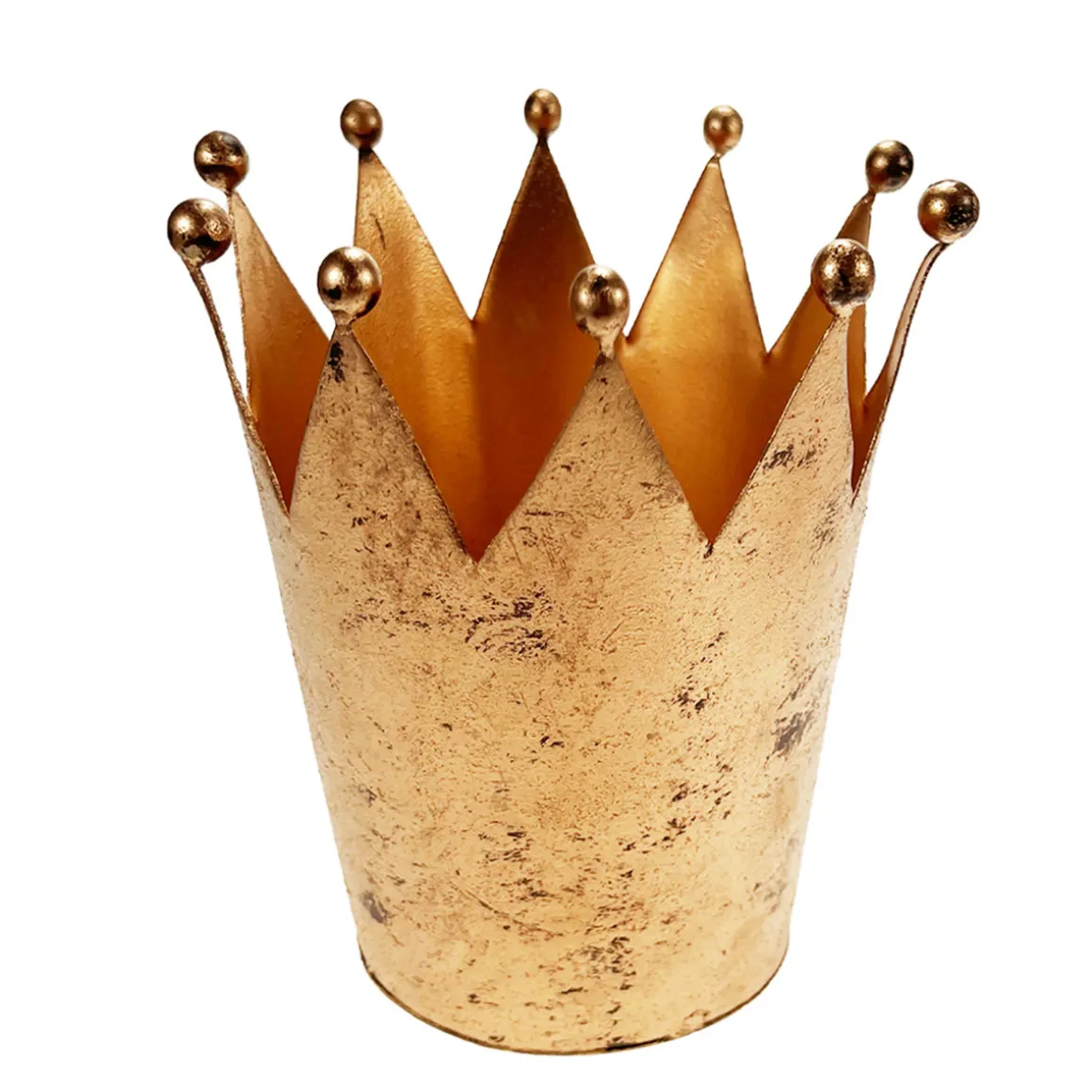 Deko Krone Antik gold, Windlicht Metallkrone gold – used look, Pflanzgefäß, 14cm