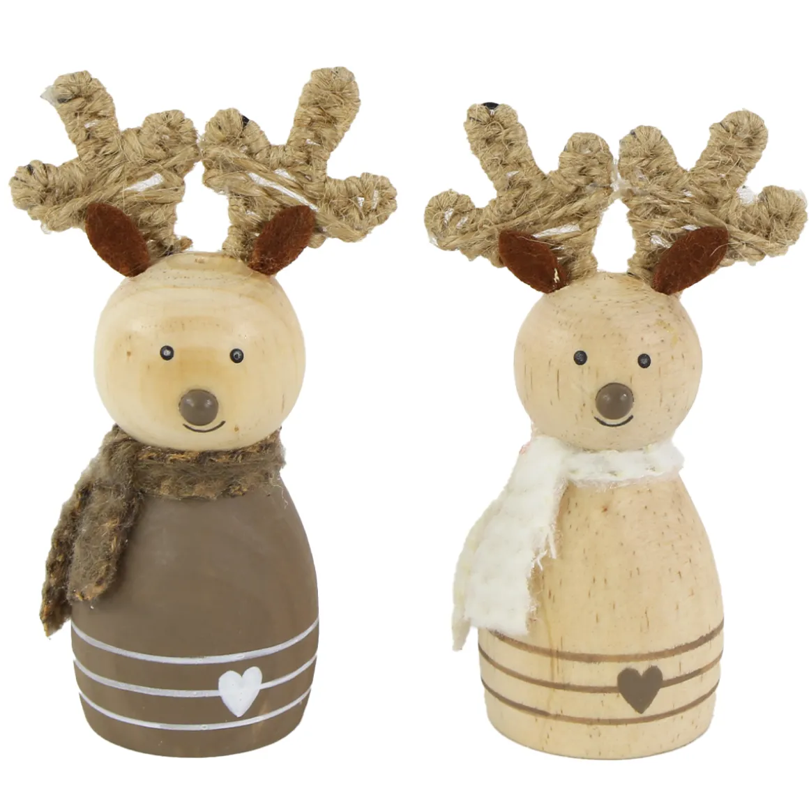 Deko Rentier, Rentier aus Holz mit Schal, natur, 10cm, Naturholz