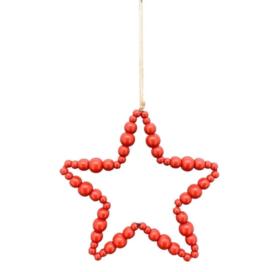 Deko Stern, Holzstern aus Naturholzperlen in rot, Ø20cm, Hänger