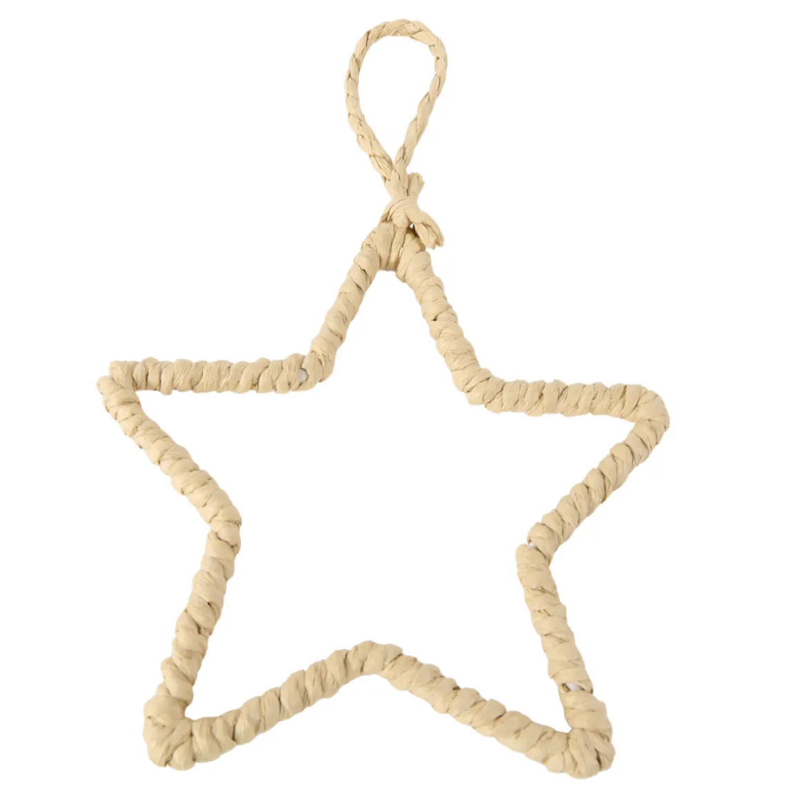 Deko Stern Jute-Bast Natur, Jutestern hell, Weihnachtsstern umwickelt, Ø15cm
