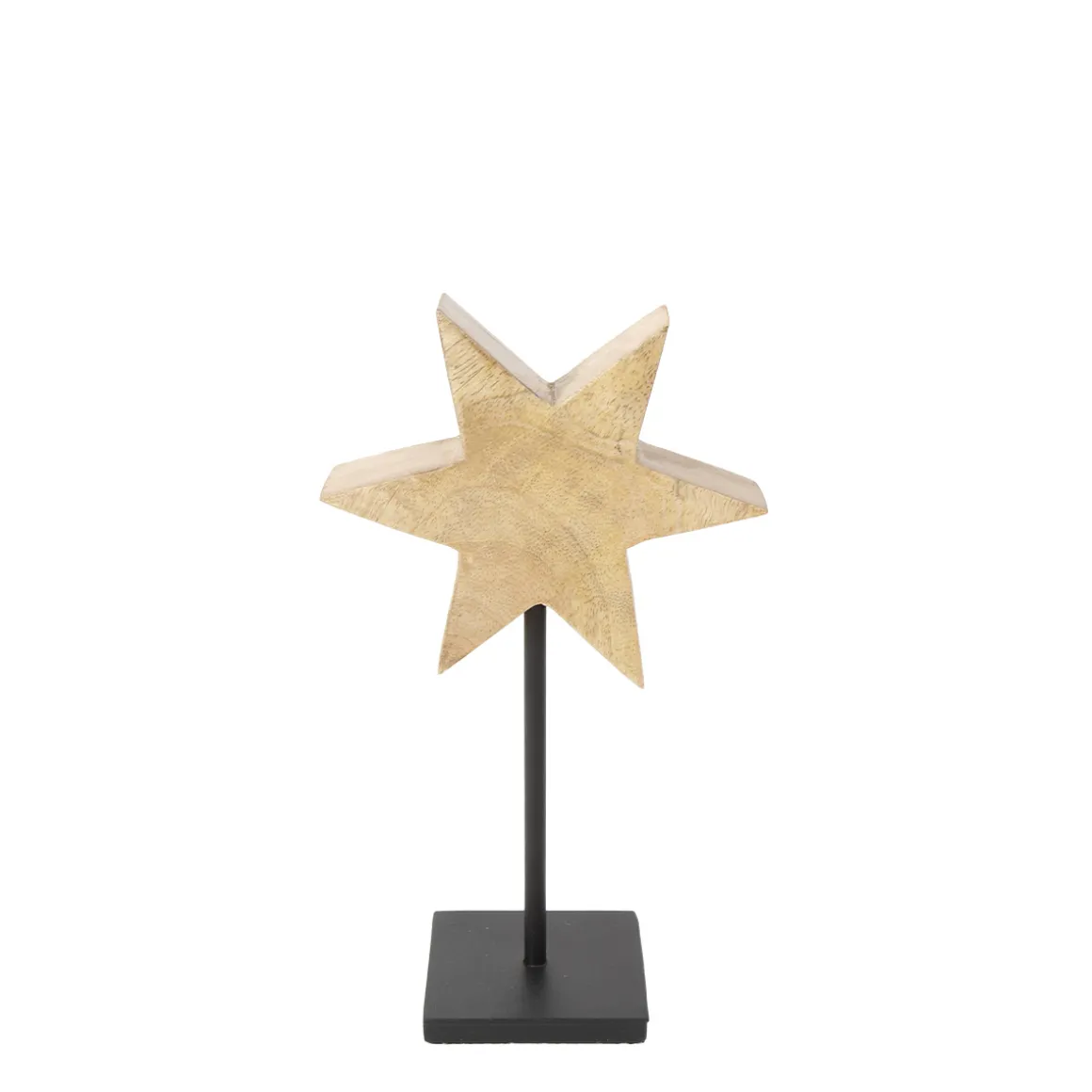 Deko Stern Naturholz, Holzstern mit Maserung Natur auf Metallständer, 25cm