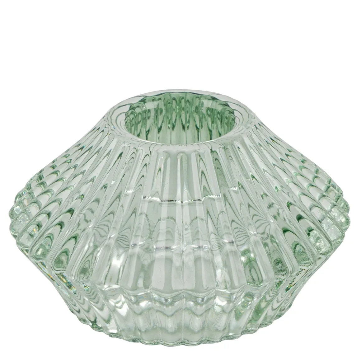 Deko Teelichtglas Ufo, Windlicht aus Glas gestreift hellgrün, 7x4cm