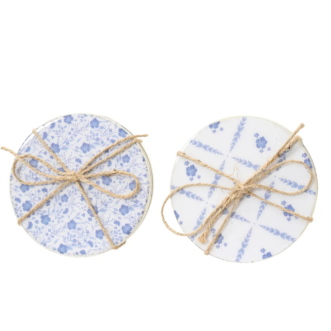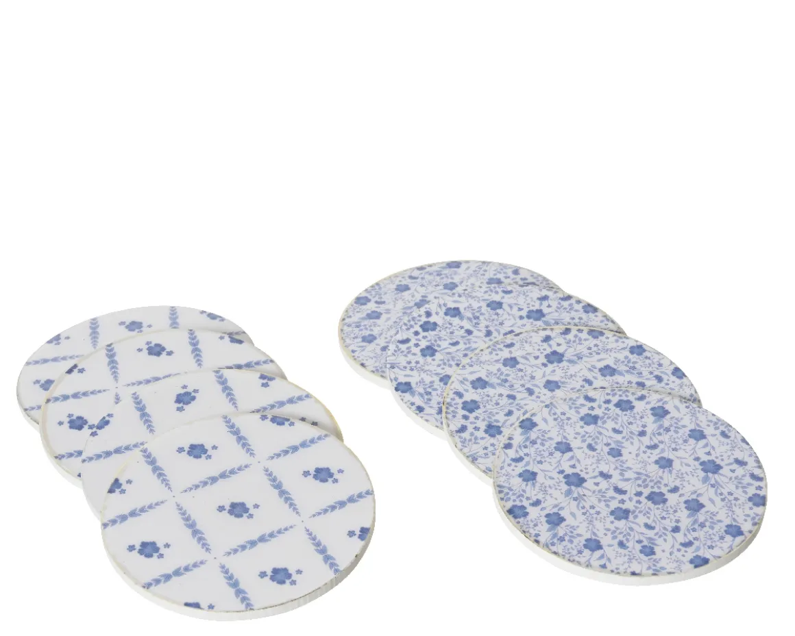 Deko Untersetzer Karo, Holzuntersetzer blau-weiß, Set/4