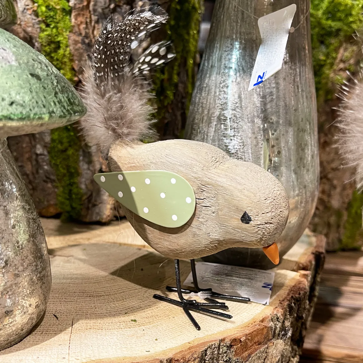 Deko Vogel, Holzvogel, grün oder creme, 13x10cm