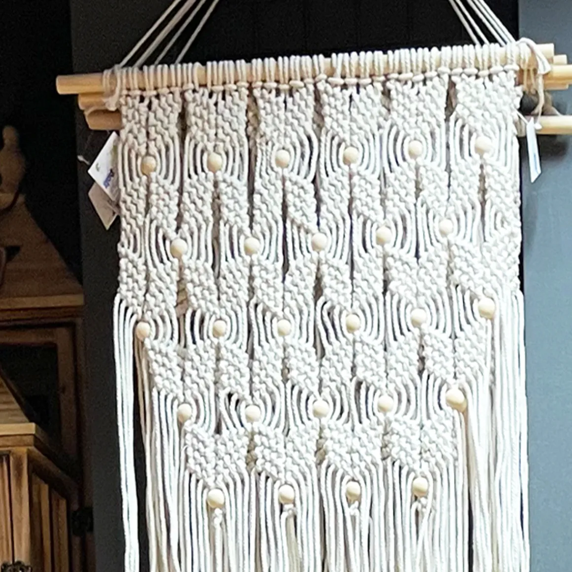 Deko Wandhänger Boho, creme, Makramee, 135x65cm, Hänger