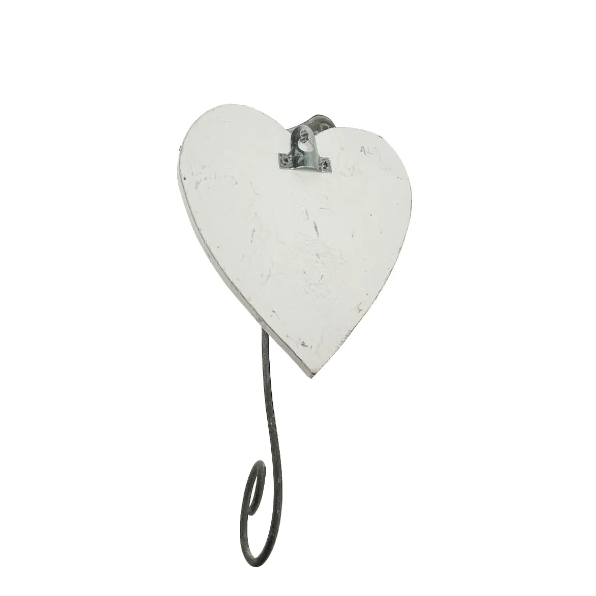Wandhaken, Garderobe, Herz mit Vogel, grau-weiß- used look, 21x11cm, Metall-Holz