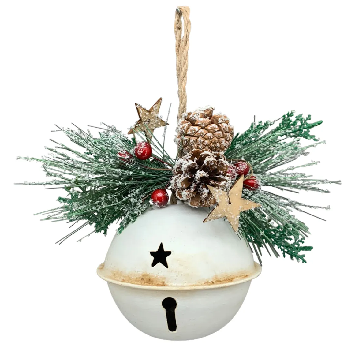 Produktinformationen „Deko Weihnachtsglocke cremeweiß used look, Metallschelle mit Gesteck, 12cm, Hänger“
