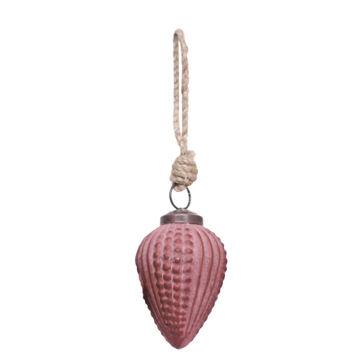 Deko Weihnachtshänger Zapfenform länglich burgund, rustikaler Glashänger, 8x6cm