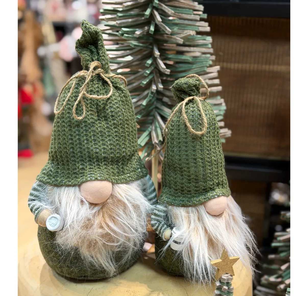Mit seiner gestrickten grünen Mütze, dem weichen Plüschbart und kleinen Kaffeebecher to go wirkt dieser Weihnachtswichtel, als wäre er gerade auf dem Weg zu einem winterlichen Spaziergang.