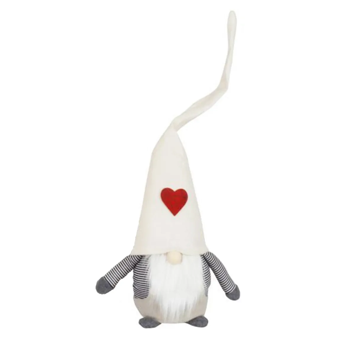 Deko Wichtel, Weihnachtszwerg Santa Brönie, weiße Filzmütze mit Herz, 40cm